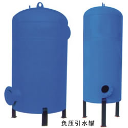 負(fù)壓引水罐,俗稱真空引水罐,用于非吸程供水泵(水源低于泵進(jìn)水口的場(chǎng)所)。消防系統(tǒng)建議用自灌式,如無(wú)條件實(shí)現(xiàn)自灌式,消防規(guī)范規(guī)定必須有可靠的引水裝置,即負(fù)壓引水罐,用于抽吸地下水,河塘,湖泊,取水口等自然水,罐相附加自來(lái)水一般采用DN25管進(jìn)水,只需一次灌水,終身使用,原理是當(dāng)啟動(dòng)消防主泵開始工作,罐內(nèi)水位下降,灌頂部形成真壓(負(fù)壓),當(dāng)罐內(nèi)水位下降至罐體60%時(shí),灌頂形成一定真空,自然水源即源源不斷地被吸出。 負(fù)壓引水罐是根據(jù)消防的流量,楊程結(jié)合進(jìn)水管的直徑、長(zhǎng)度及取水立管的高度直徑而結(jié)合選值。 |